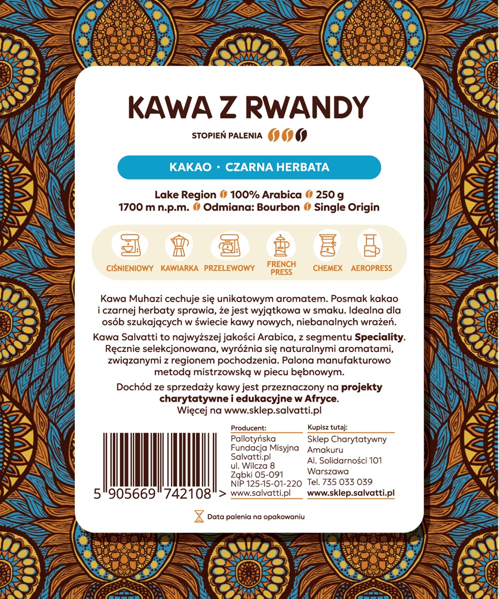 Muhazi - jest uprawiana na wysokości 1600 metrów. Czysta źródlana woda i wulkaniczna gleba okolic jeziora Muhazi, sprawiają, że drzewka kawy gatunku Arabica osiągają większą wysokość niż w innych miejscach Rwandy. Ziarna kawy Muhazi mają w smaku niespotykaną słodko-gorzką nutę, pozwalającą wyczuć ślady czekolady i mocnej czarnej herbaty jednocześnie. Plantacje tej kawy rozciągają się we wschodniej części Rwandy, w regionie jeziora Muhazi, na wysokości 1700 m. Żyzne gleby nadają kawie smak kakao i aromatycznej czarnej herbaty. Kawa bardzo unikatowa, zalecana do metod ciśnieniowych, można również spróbować w metodach alternatywnych.