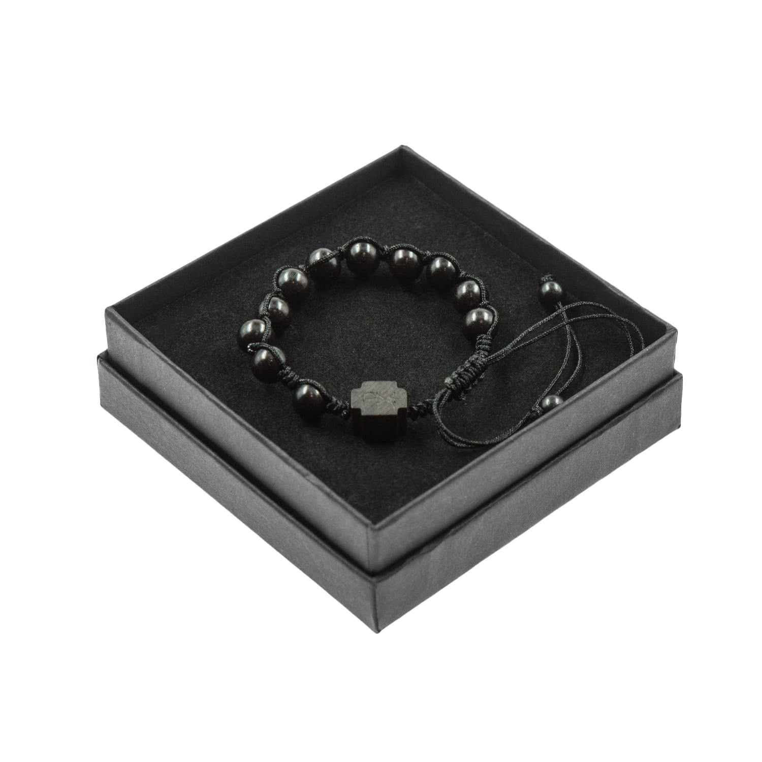 Bransoletka jest nawleczona na trwały sznurek w stylu Shamballa i posiada wygodną regulację wielkości, dzięki czemu idealnie dopasuje się do każdego nadgarstka. Całość zapakowana jest w elekoracyjne, czarne pudełko, co czyni ją gotowym, wyrafinowanym prezentem religijnym na każdą okazję.