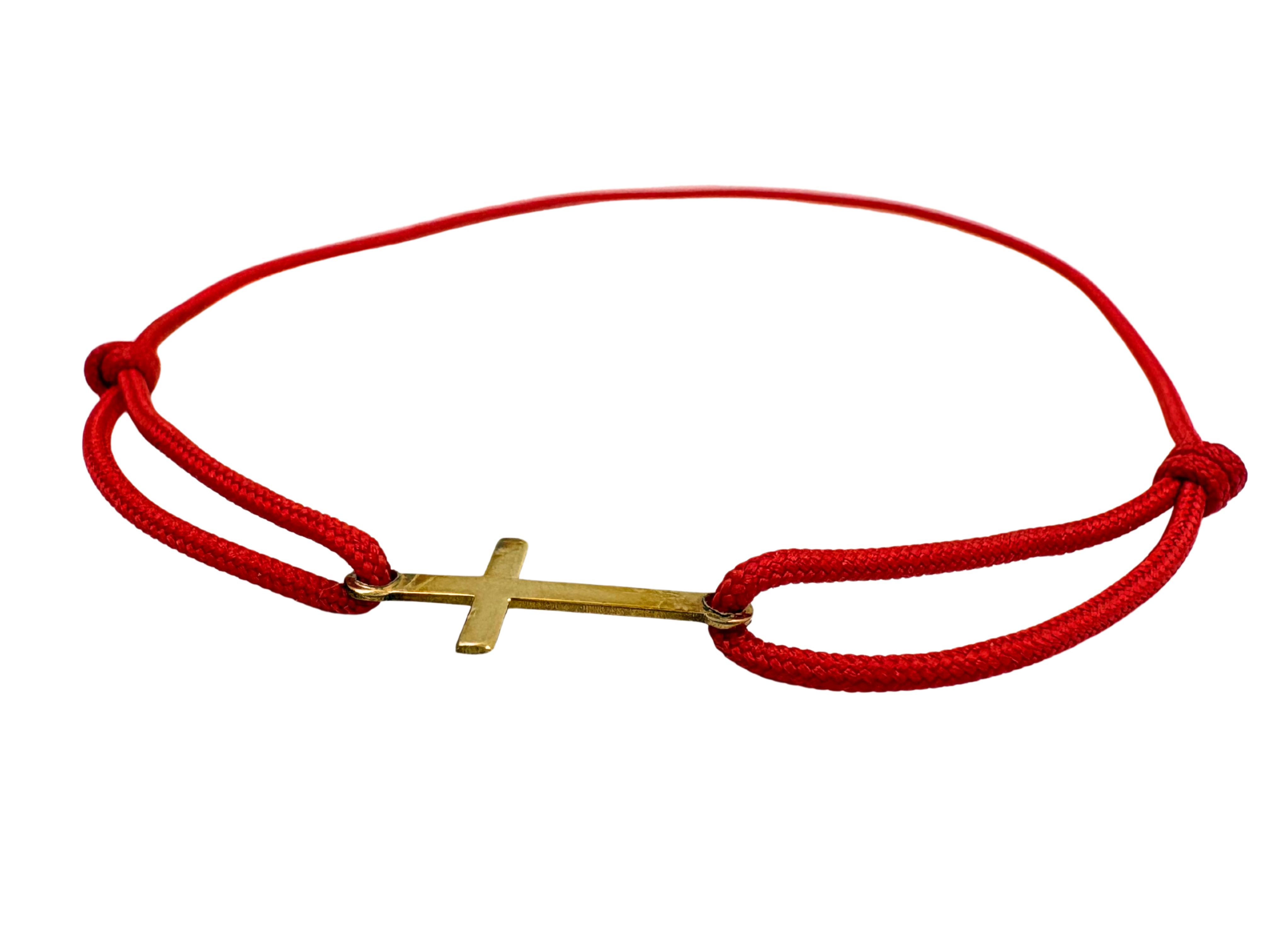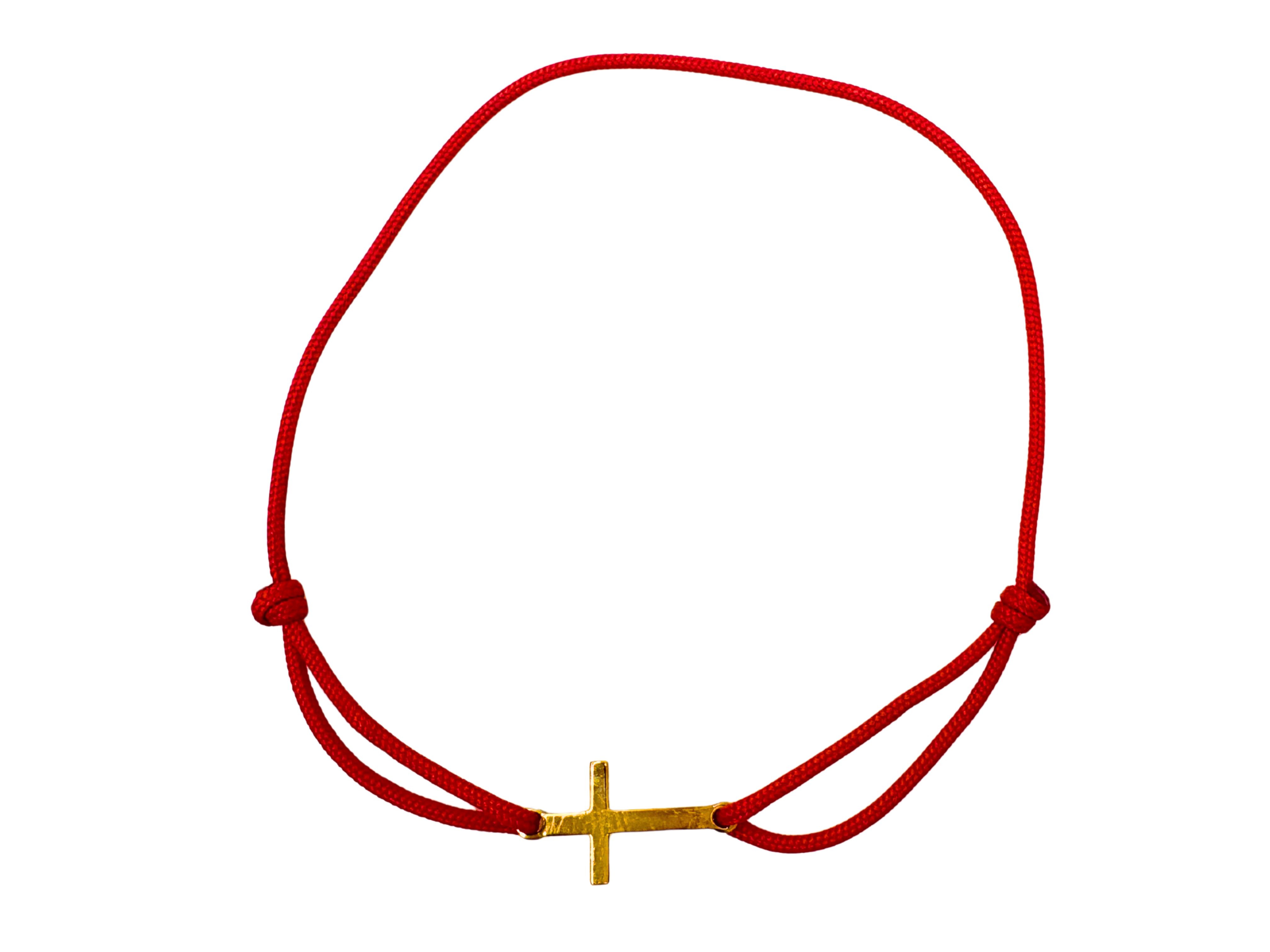 Bransoletka z krzyżykiem pozłacanym na sznurku - czerwona