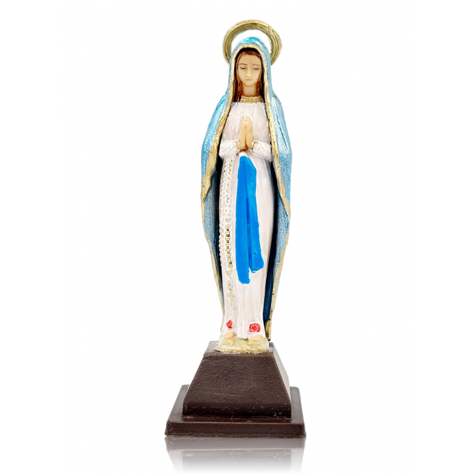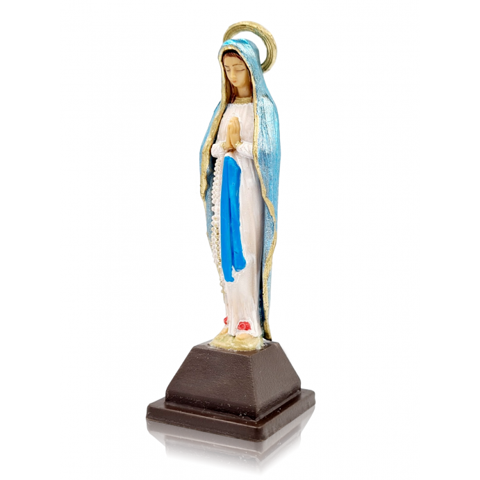Ręcznie malowana figura Matki Bożej wykonana z polimeru termoplastycznego.