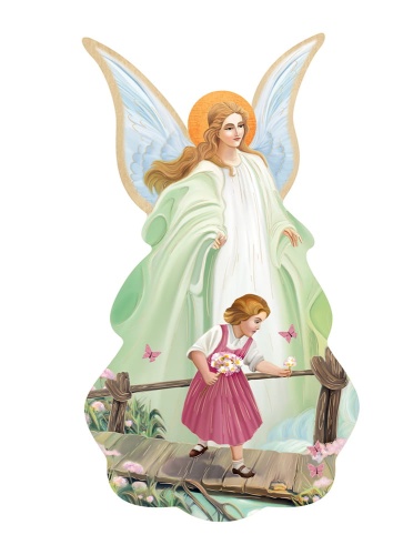 Ikona Anioł Stróż na kładce dla dziewczynki rozm. 26 cm
