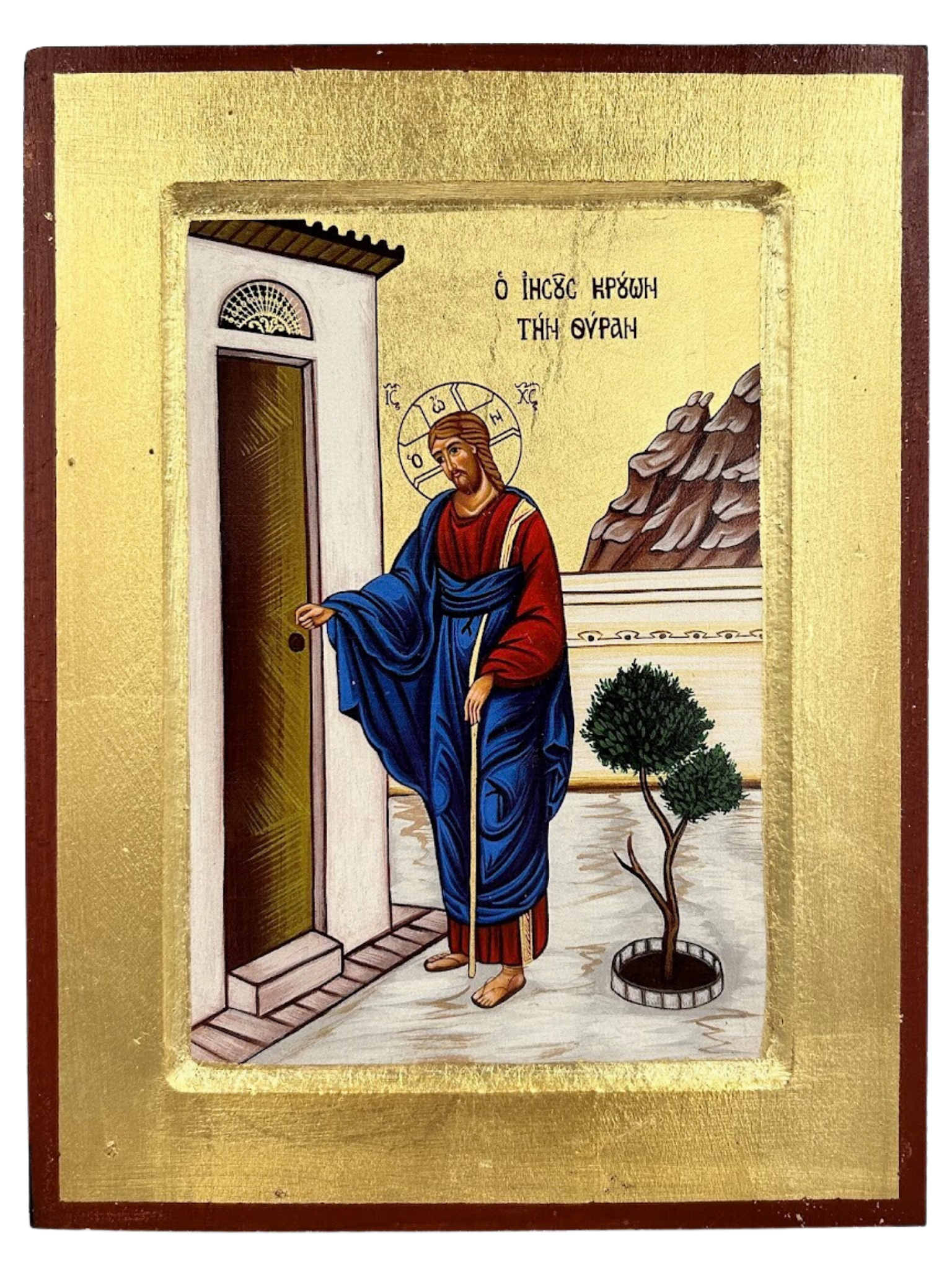 Ikona przedstawiająca Jezusa kołaczącego do drzwi. Scena ta nawiązuje do wersetu z Apokalipsy świętego Jana: