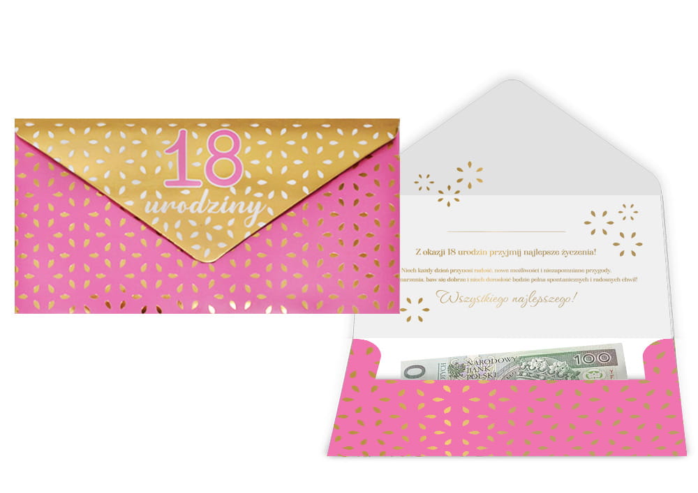 Koperta na banknoty 18 URODZINY RÓŻOWA
