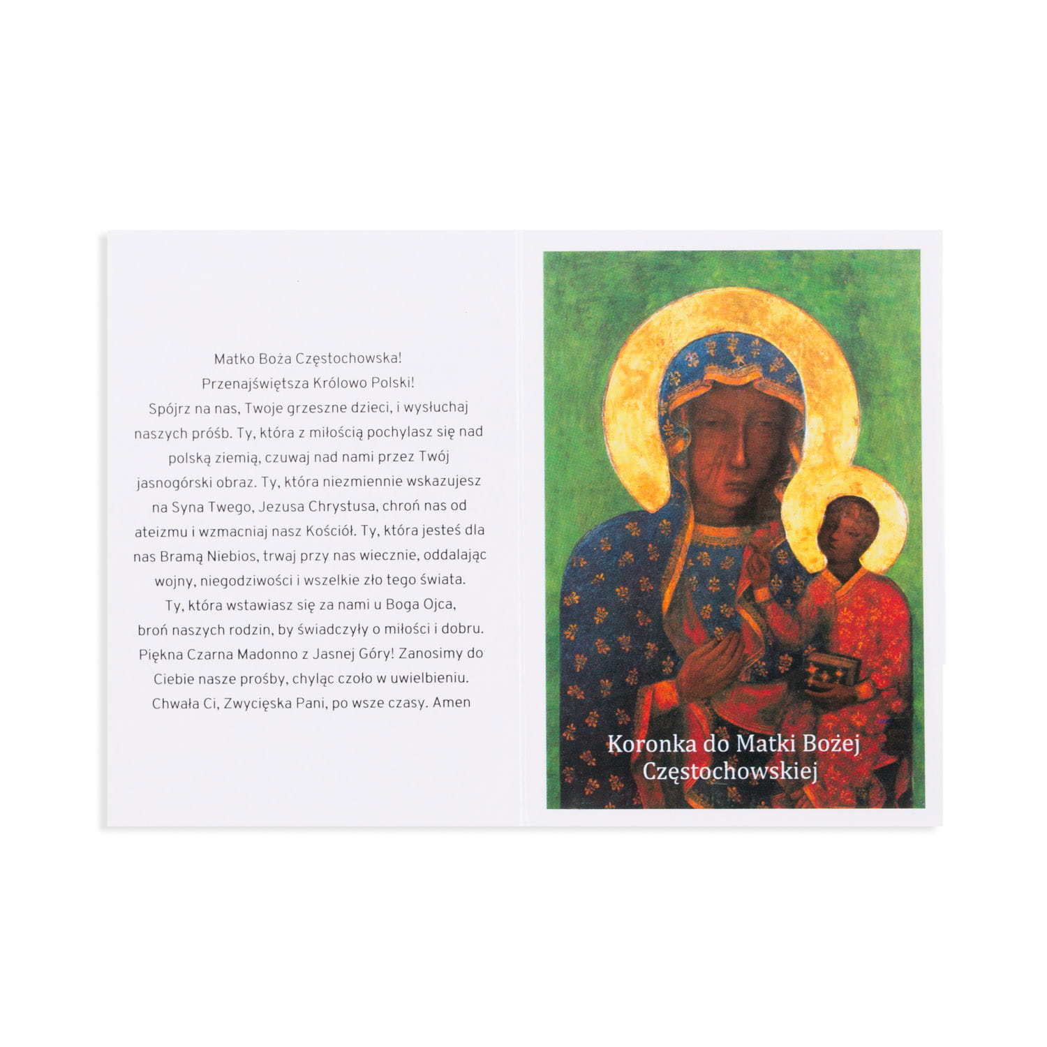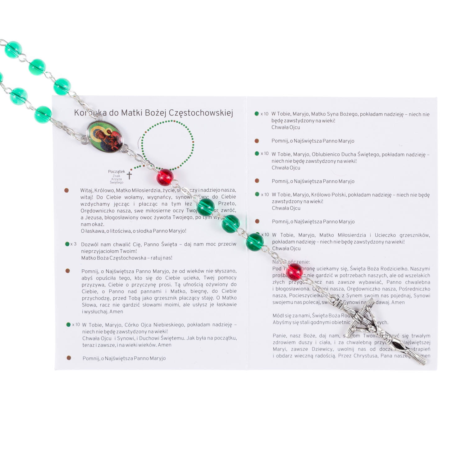 Do każdego różańca dołączona jest instrukcja modlitwy w formie karty, co ułatwia i pogłębia praktykowanie tego narodowego nabożeństwa. Koronka jest pięknym prezentem religijnym i cennym elementem modlitwy w każdym polskim domu.