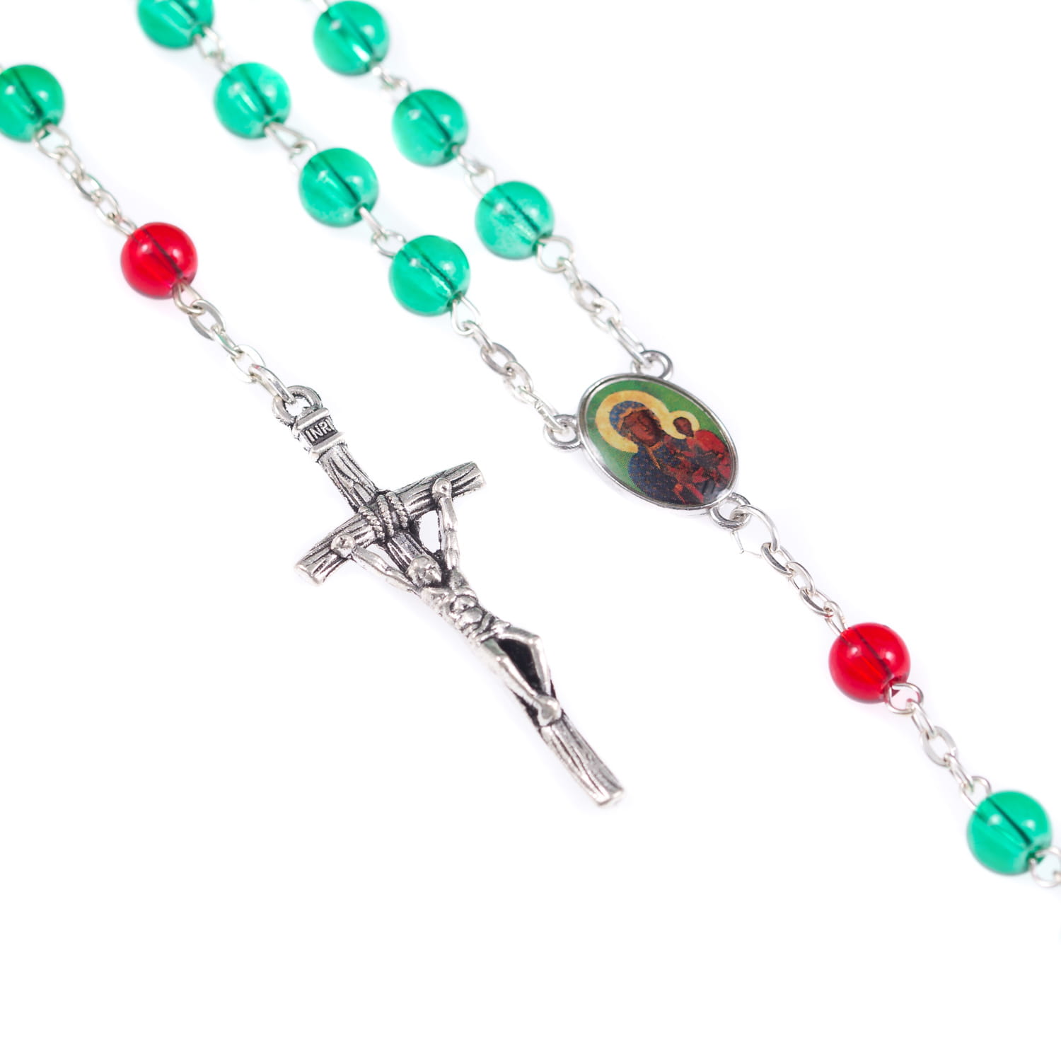 Różaniec składa się z koralików o średnicy 6 mm, wykonanych z lśniącego szkła, połączonych trwałym, metalowym łańcuszkiem. W miejscu medalika umieszczono wizerunek Jasnogórskiej Ikony, co nadaje koronce szczególnej wymowy duchowej i historycznej.