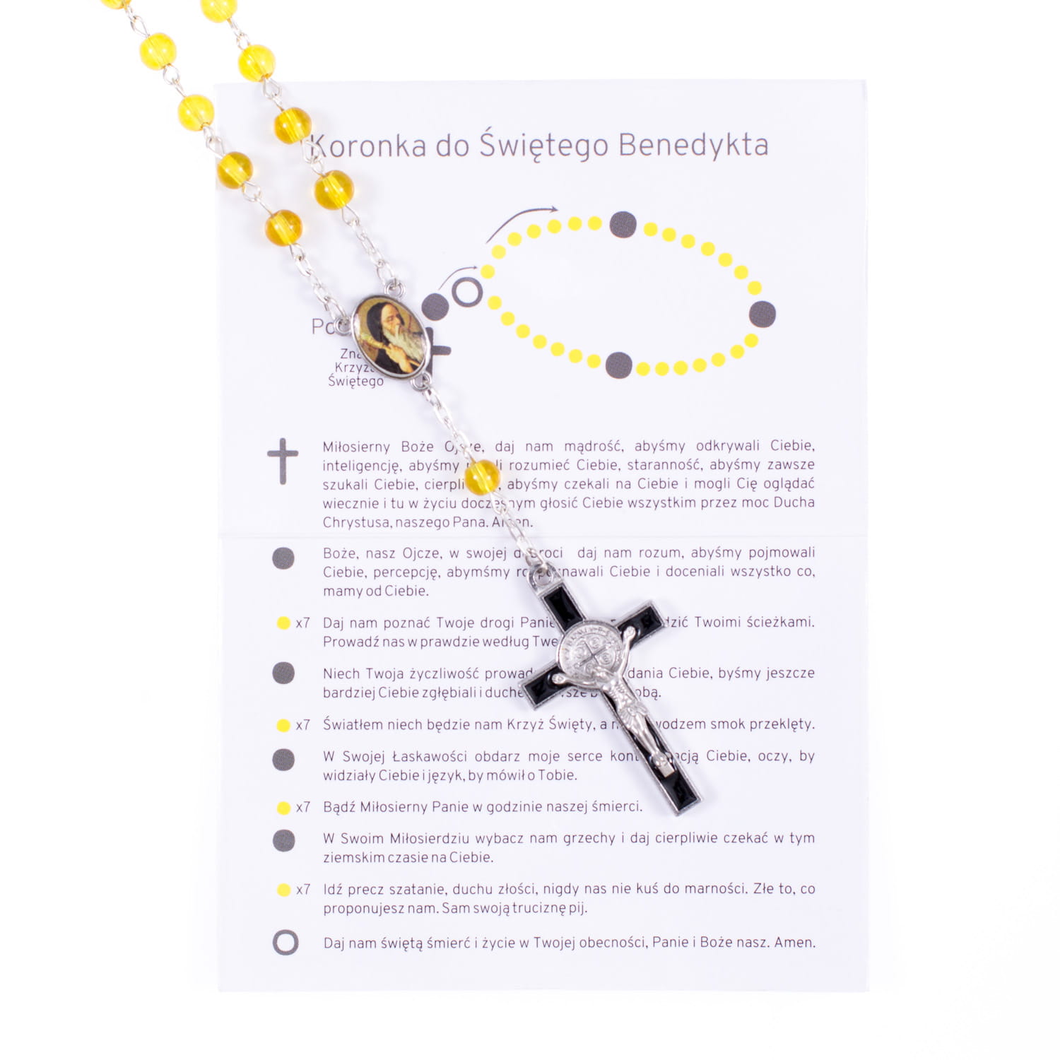 Koronka do św. Benedykta z instrukcją modlitwy