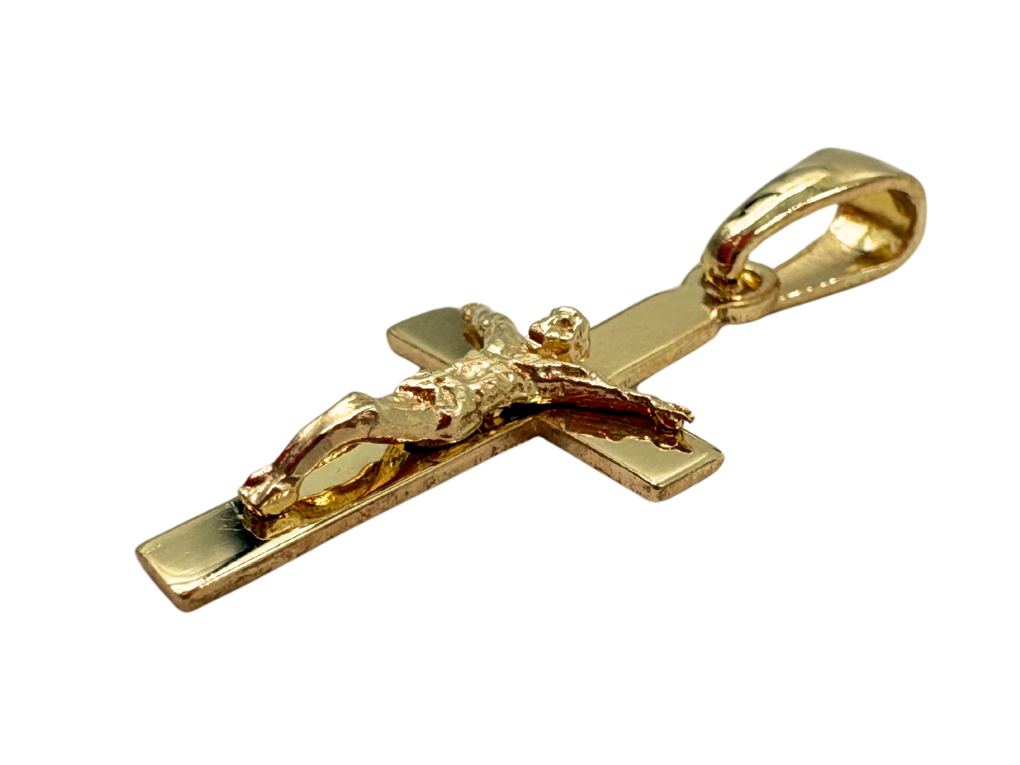 Dzięki kompaktowej wielkości (2 cm), krzyżyk prezentuje się niezwykle subtelnie, co czyni go idealnym wyborem zarówno dla dzieci, jak i dorosłych. Jest to doskonała pamiątka z okazji sakramentu Chrztu Świętego lub Pierwszej Komunii, łącząca tradycyjną symbolikę z prestiżowym wyglądem złota. Solidne, polerowane uszko pozwala na łatwe dopasowanie krzyżyka do pozłacanego łańcuszka, tworząc spójny i efektowny komplet biżuterii sakralnej.