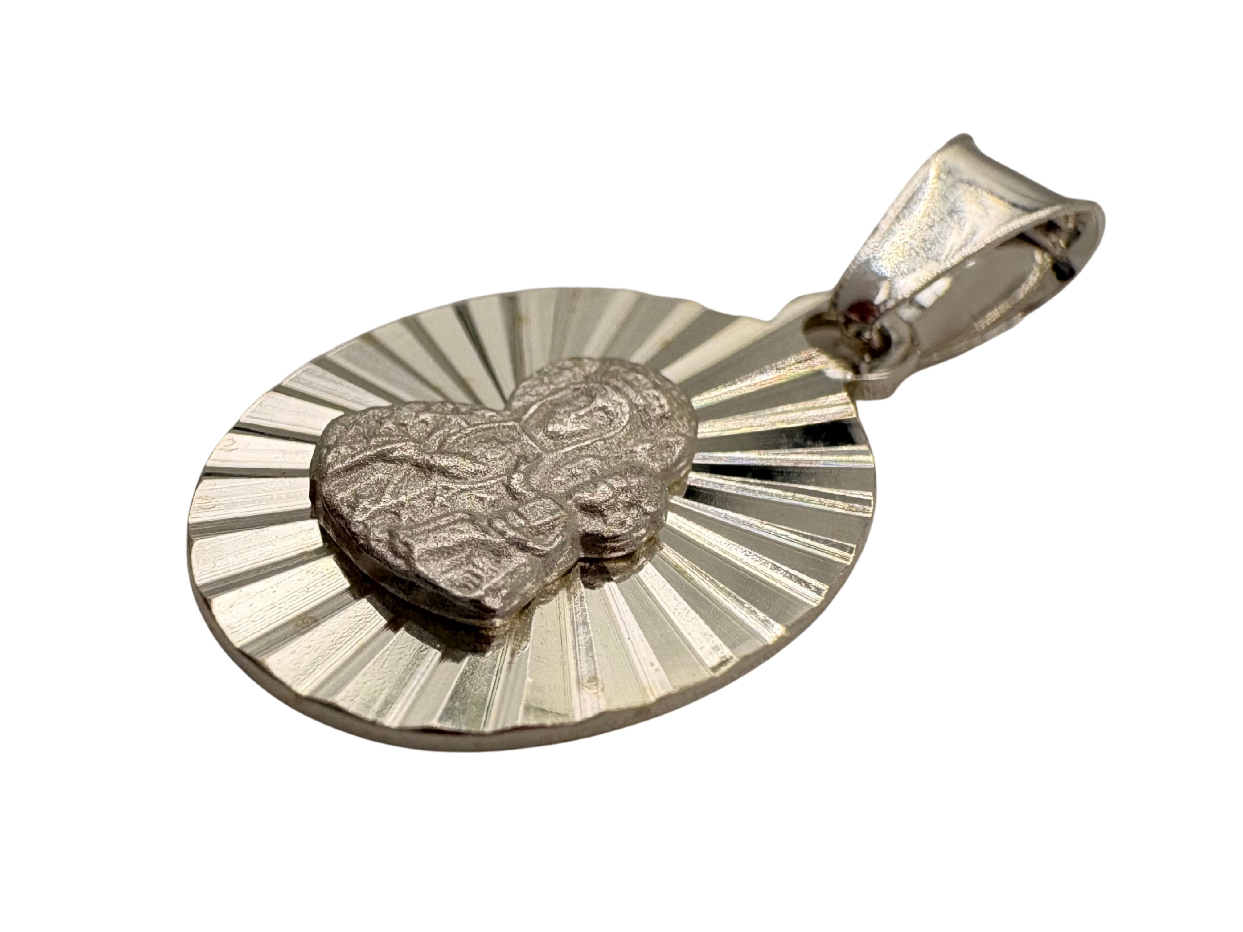 Prezentujemy wyjątkowy medalik z wizerunkiem Matki Boskiej Częstochowskiej, wykonany z najwyższej jakości srebra próby 925. Ten model wyróżnia się niezwykle efektownym, promienistym tłem. Grawerowane linie wychodzące centralnie od postaci Madonny tworzą aurę świetlistości, która pod wpływem najmniejszego ruchu mieni się i odbija światło, nadając biżuterii dynamiki i blasku.
