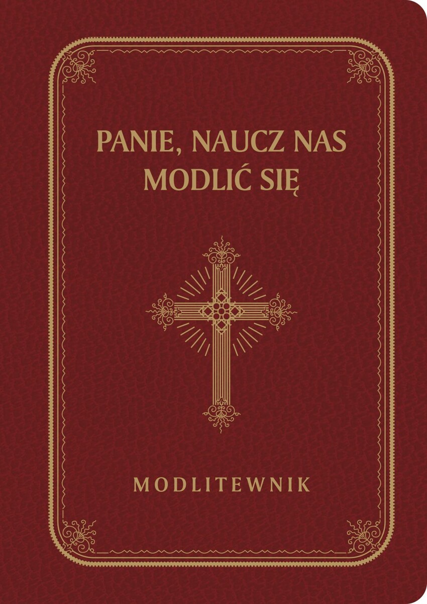 Prezentujemy wyjątkową edycję modlitewnika „Panie, naucz nas modlić się", która łączy bogactwo treści z niezwykłą dbałością o każdy detal. Książeczka wyróżnia się bordową oprawą skóropodobną o drobnoziarnistej fakturze, zdobioną elegancką złotą ramką z ornamentami w narożnikach oraz centralnie umieszczonym złotym krzyżem w promieniach chwały – symbolem wiary i nadziei.
