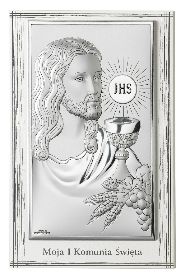 Srebrny Obrazek na Ozdobnej Desce – Moja I Komunia Święta