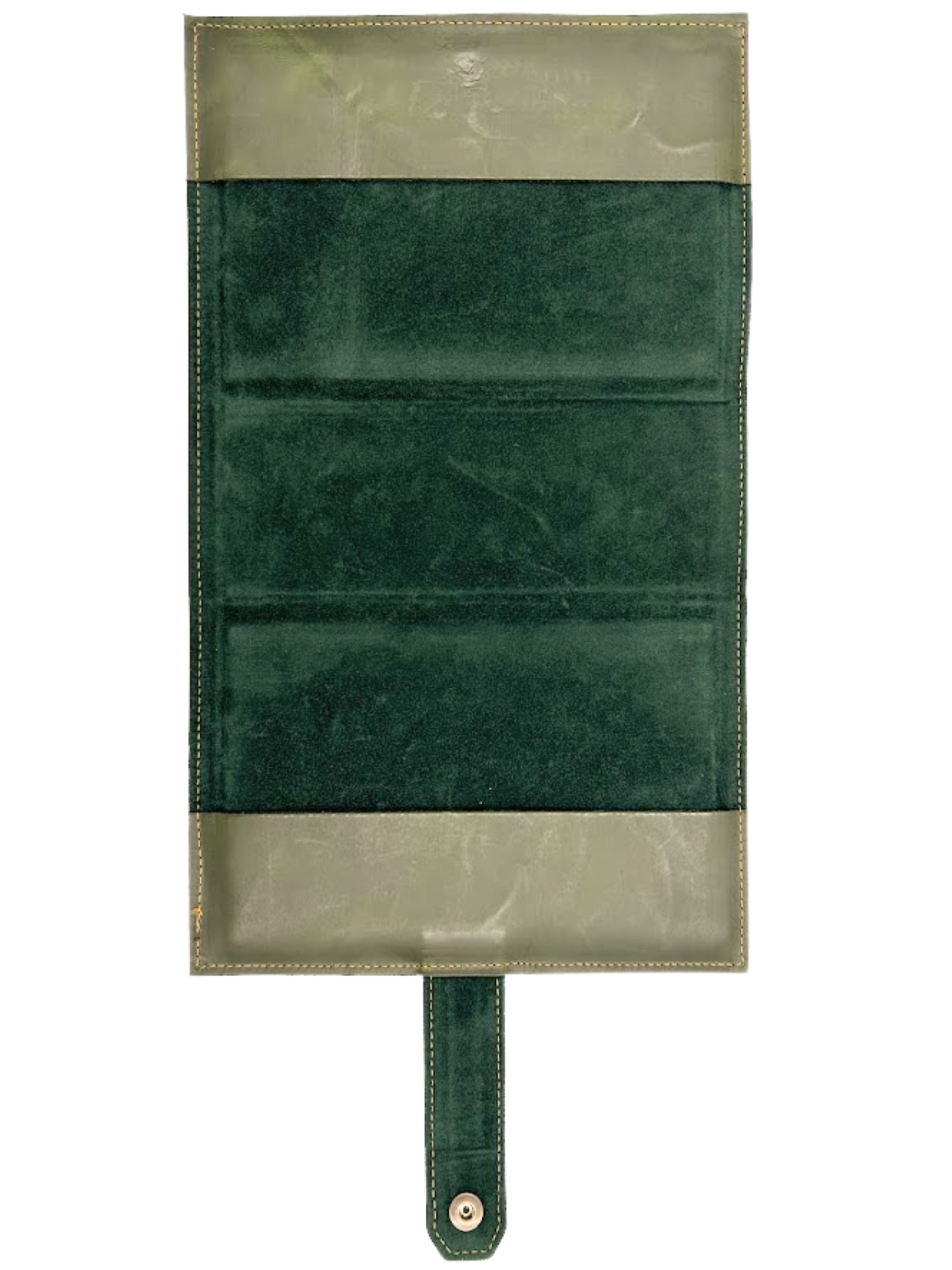 Ekskluzywna, ręcznie wykonana okładka na Biblię Jerozolimską w małym formacie. Wykonana z wysokiej jakości naturalnej skóry, w eleganckim zielonym kolorze. Usztywniana konstrukcja zapewnia trwałość i solidną ochronę, a wnętrze wyściełane miękką, aksamitną podszewką dodaje luksusowego charakteru oraz chroni księgę przed uszkodzeniami.
