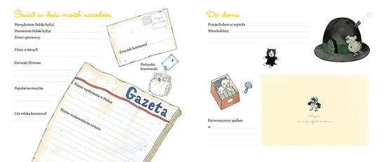 Znajdziesz tu miejsce, by odpowiedzieć na pytania i zapisać najważniejsze wspomnienia, takie jak: