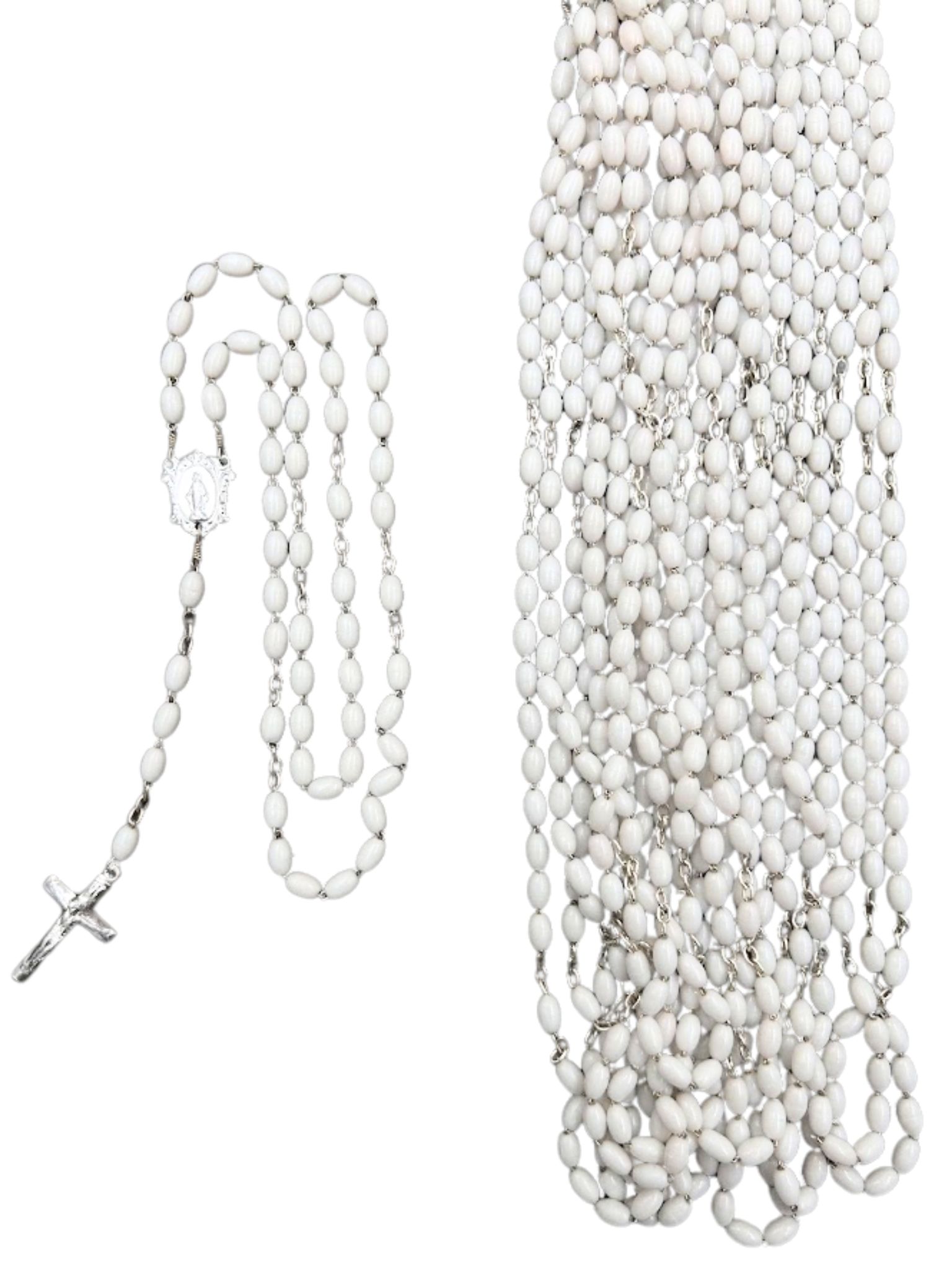 Różańce na łańcuszku z Matką Bożą Niepokalaną 12 szt. – białe, plastikowe