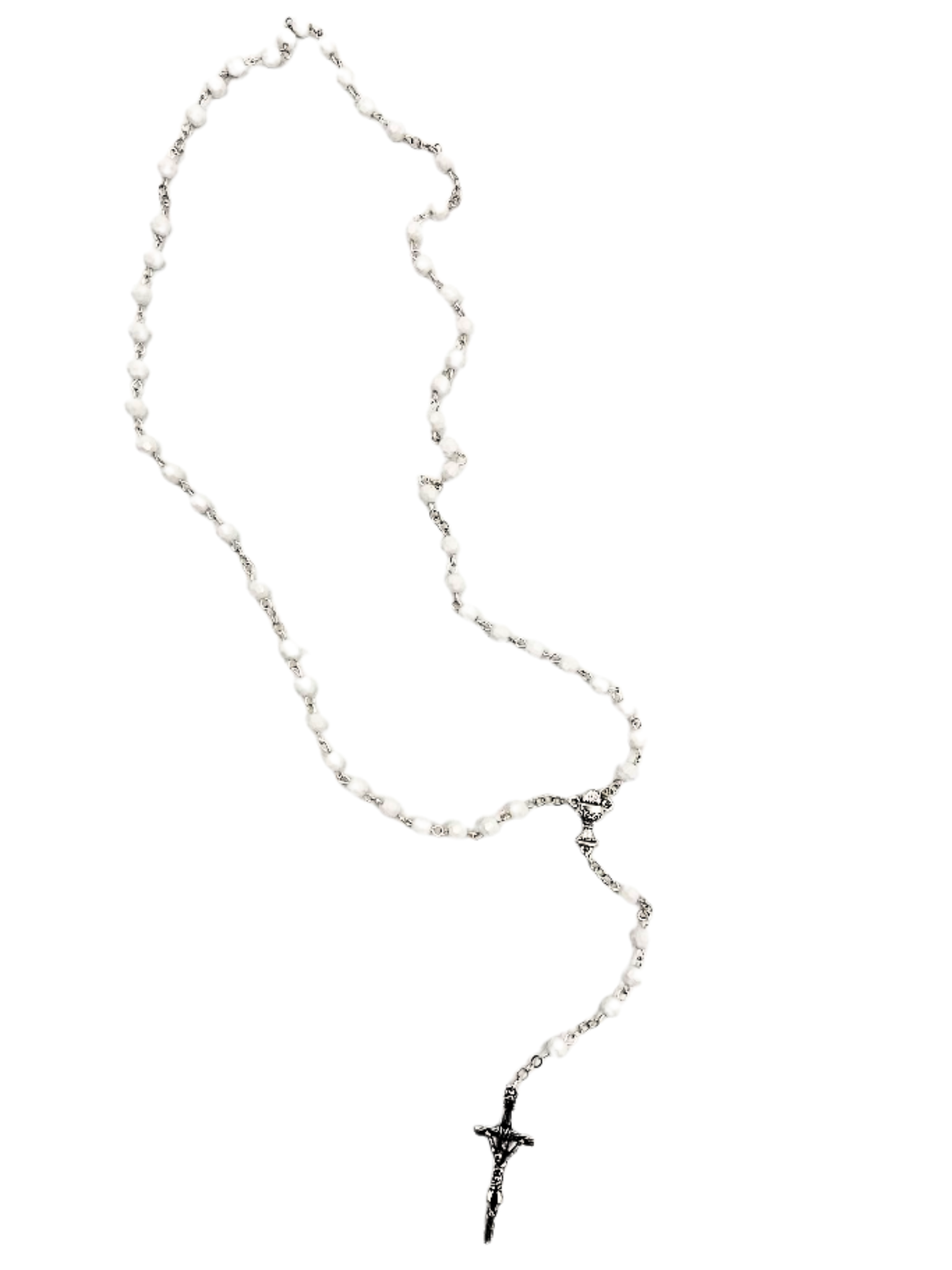 Różaniec komunijny na łańcuszku – biały, plastikowy