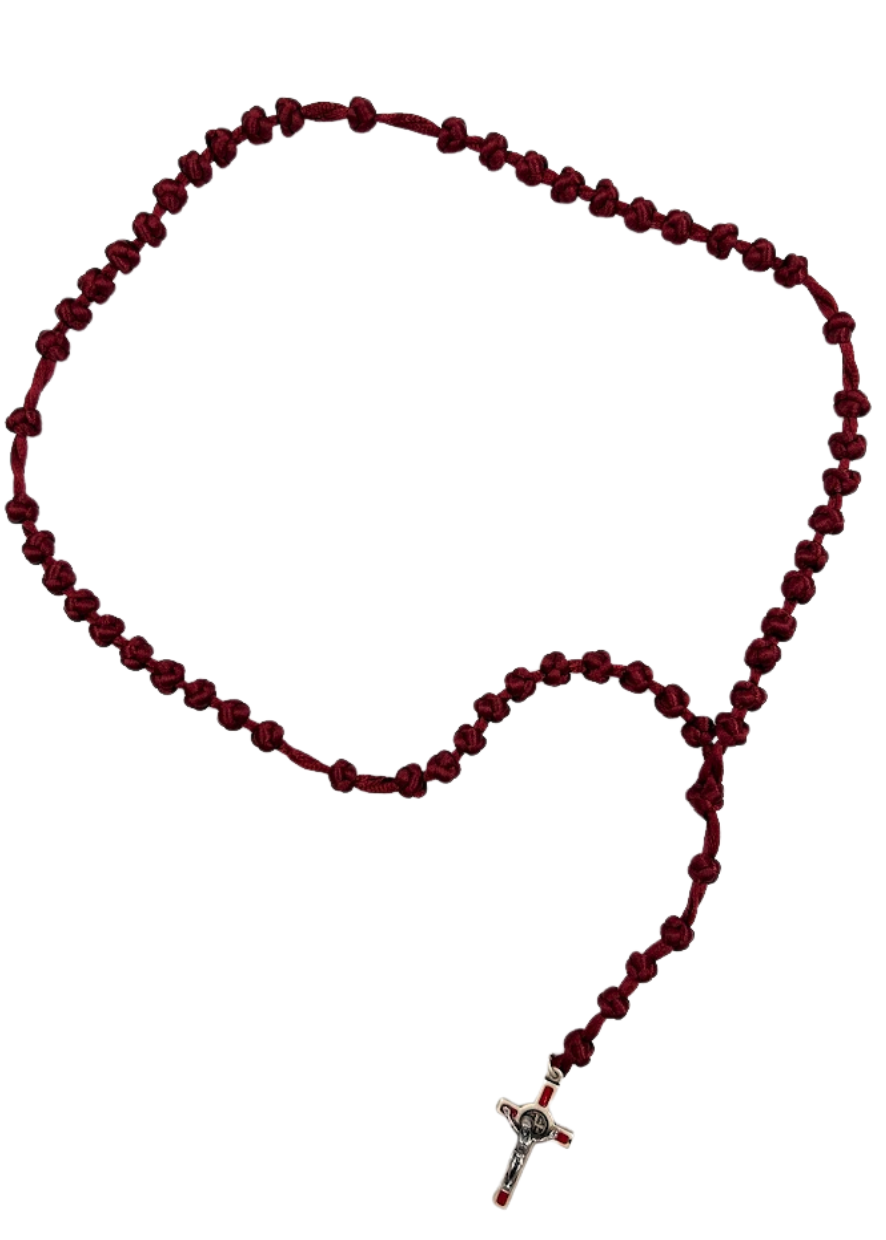 Różaniec sznurkowy pleciony bordowy krzyż św. Benedykta
