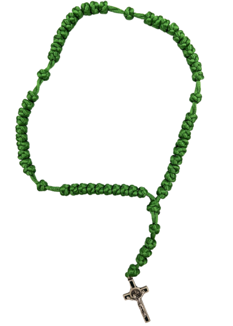 Różaniec sznurkowy pleciony zielony krzyż św. Benedykta